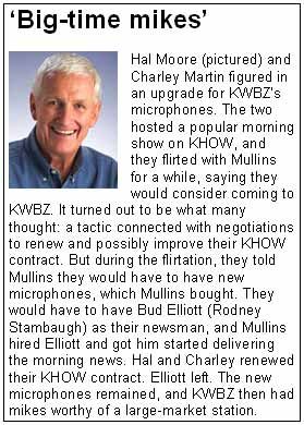 Bradshaw once called me at home about 1:30 a.m. to say that KWBZ was off the air. When I turned on a radio, I could tell that the signal was there, but without audio. That meant a trip to the studio, not the transmitter.