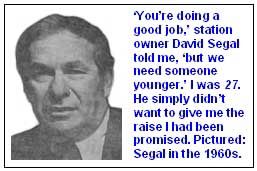 “You’re doing a good job,” he said, “but we need someone younger.” I was 27. That reason didn’t make sense, but terminated is terminated. What I think happened is that O’Brien never told Segal when he hired me that he had promised me a raise. When I called him on it, he couldn’t deliver. He had to find a way to move me out, and thus the shift changes that disguised his real intention behind hiring a new 7 p.m. –midnight deejay.