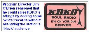 Case in point: David M. Segal had been operating KDKO, a black-oriented radio station, for many years from a combined office, studio and transmitter location south of the Denver suburb of Littleton, Colorado. Segal normally hired black program directors and deejays. Mullica (white, as the Italian name might tell you), convinced Segal to hire him as the program director and morning show host. O’Brien promised increased non-black listenership without alienating the core black audience.