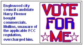Here's another quirky twist that bothered Mullins when it came to light: The station was violating the FCC's rule that required broadcasters to charge political candidates the lowest published advertising fequency rate, regardless of the quantity of commercials they bought.