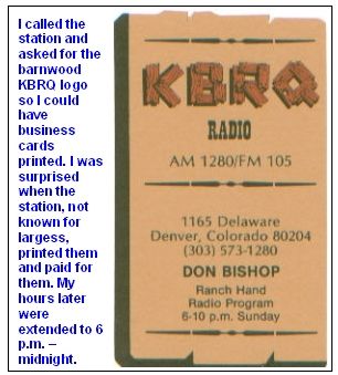 I wore a suit to my day job, so when I would take time to attend KBRQ staff meetings on weekdays, I hardly looked the part of a "ranch hand," as the KBRQ deejays were called. I called myself "Country Don" to play up the difference.