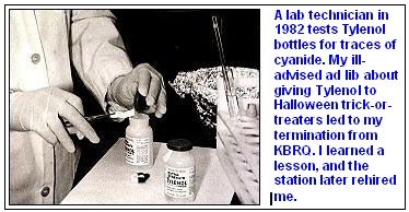 Halloween was approaching, and a week or two before, seven people had died of poisoning in the Chicago area from ingesting Tylenol laced with cyanide. That notorious case of product tampering led to today's use of seals on food and drug containers, and the more widespread use of tablets instead of more easily contaminated capsules.
