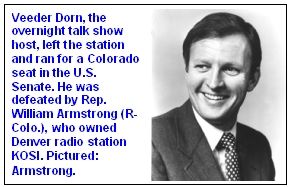 Footnote: Dorn ran for a U.S. Senate seat from Colorado as a candidate of the then-and-now unknown United States party in 1978. Rep. William Armstrong (R-Colo.), who owned KOSI, won the election.