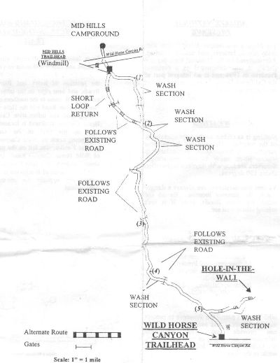 We planned our first hike of this visit for the trail between Mid Hills Campground and Hole-in-the-Wall. Here's the trail map: